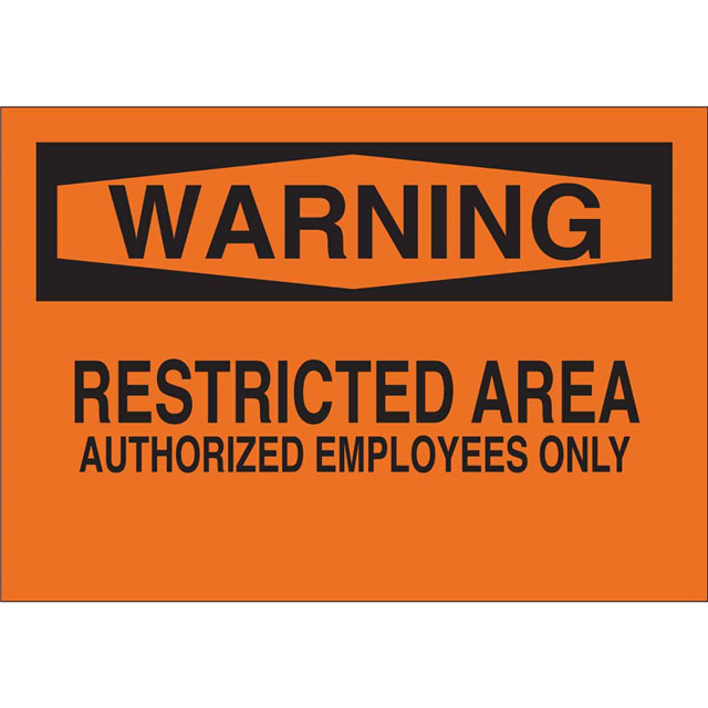 This is manufactured by Brady Corporation. The manufacturer part number is 84206. Label with a size of 14.00" l x 10.00" w (355.6mm x 254.0mm). The product is not applicable. It is assigned with possible HTSUS value of 3926.90.9989. It has a classic black legend, orange background colour. The product brady®, is a highly preferred choice for users. The product is made from highly stable and reliable polyester. In addition, it is reach unaffected. Its typical moisture sensitivity level is not applicable. In addition, bulk is the available packaging type of the product. A bespoke label is a warning. restricted area authorized employees only label. The product is suitable for use with warning. It has a long 4 weeks standard lead time. The brady corporation's product offers user-desired applications. The product is designated with the ear99 code number.
