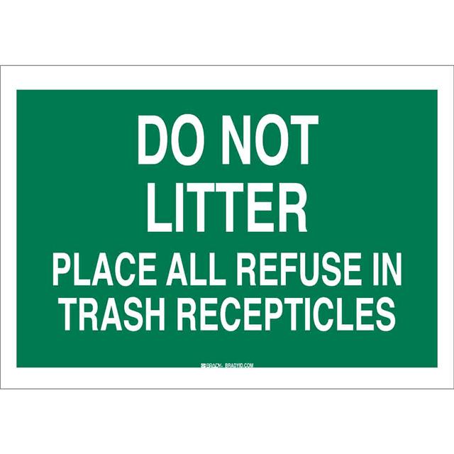 This is manufactured by Brady Corporation. The manufacturer part number is 85703. Label with a size of 14.00" l x 10.00" w (355.6mm x 254.0mm). The product is rohs3 compliant. It is assigned with possible HTSUS value of 3926.90.9985. It is shipped in bulk package . It has a classic white legend, green background colour. The product brady®, is a highly preferred choice for users. The product is made from highly stable and reliable polyester. In addition, it is reach unaffected. Its typical moisture sensitivity level is not applicable. A bespoke label is a do not litter. do not litter place all refuse in trash receptacle label. The product is suitable for use with warning. It has a long 4 weeks standard lead time. The product is designated with the ear99 code number.