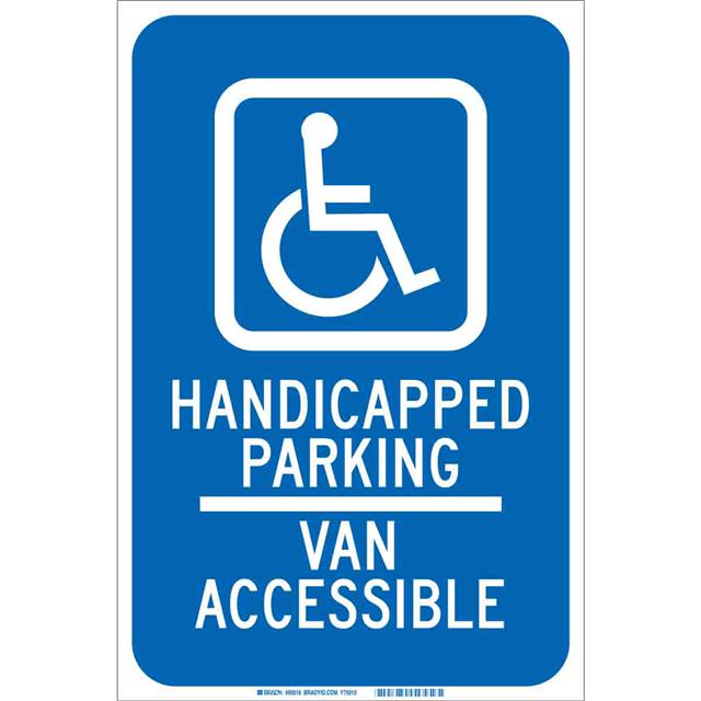 This is manufactured by Brady Corporation. The manufacturer part number is 90018. Label with a size of 18.00" l x 12.00" w (457.2mm x 304.8mm). The product is rohs3 compliant. It is assigned with possible HTSUS value of 8310.00.0000. It is shipped in bulk package . It has a classic white legend, blue background colour. The product brady®, is a highly preferred choice for users. The product is made from highly stable and reliable aluminum. In addition, it is reach unaffected. Its typical moisture sensitivity level is not applicable. A bespoke label is a handicapped parking van accessible label. The product is suitable for use with warning. It has a long 4 weeks standard lead time. The product is designated with the ear99 code number.