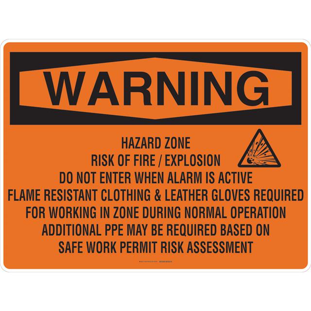This is manufactured by Brady Corporation. The manufacturer part number is 145639. Label with a size of 48.00" l x 36.00" w (1219.2mm x 914.4mm). The product is rohs3 compliant. It is assigned with possible HTSUS value of 8310.00.0000. It is shipped in bulk package . It has a classic black legend, orange background colour. The product brady®, is a highly preferred choice for users. The product is made from highly stable and reliable aluminum. In addition, it is reach unaffected. Its typical moisture sensitivity level is not applicable. A bespoke label is a warning. hazard zone risk of fire/explosion do not enter when alarm is active flame resi label. The product is suitable for use with warning. It has a long 4 weeks standard lead time. The product is designated with the ear99 code number.