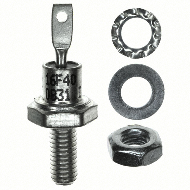 This is manufactured by Vishay General Semiconductor - Diodes Division. The manufacturer part number is VS-16F40. It is assigned with possible HTSUS value of 8541.10.0080. The product is rohs3 compliant. Moreover, the product comes in do-203aa, do-4, stud. The product operate at temperatures ranging from -65°c ~ 175°c. In addition, it is reach unaffected. It features a 16a of average rectified current. It has a robust speed of standard recovery >500ns, > 200ma (io). The product has a maximum forward voltage of 1.23 v @ 50 a. While it has maximum reverse voltage of 400 v. Its typical moisture sensitivity level is 1 (unlimited). It has a long 12 weeks standard lead time. 12 ma @ 400 v is the reverse leakage value of a bespoke product. The product is available in chassis, stud mount configuration. do-203aa (do-4) is the supplier device package value. In addition, bulk is the available packaging type of the product. This product use standard technology. Moreover, it corresponds to 16f40, a base product number of the product. The product is designated with the ear99 code number.