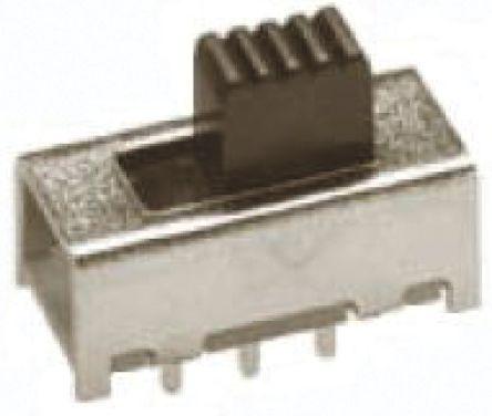 This is PCB Slide Switch SPDT 300 mA @ 125 V ac Slide manufactured by TE Connectivity. The manufacturer part number is 1825159-1. It features a 30mω contact resistance. Whereas, the minimum operating temperature of the product is -10°c. The product is available in pcb configuration. The product has -10 → +60°c of operating temperature range. The rated contact current is 300 ma @ 125 v ac. The contact is equipped with spdt configuration. The terminal is a through hole type. The product carries slide actuator. The product also provide mechanical stability with 10000operations. The actuator is designed from sturdy pet material. It has a maximum operating temperature of +60°c. The product is made from sturdy silver materials.