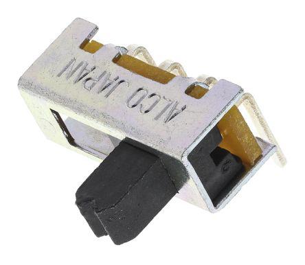 This is PCB Slide Switch SP3T On-On-On 250 mA @ 125 V ac Top manufactured by TE Connectivity. The manufacturer part number is 1825118-1. It features a 30mω contact resistance. Whereas, the minimum operating temperature of the product is -10°c. The product is available in pcb configuration. The product has -10 → +85°c of operating temperature range. The rated contact current is 250 ma @ 125 v ac. The contact is equipped with sp3t configuration. The terminal is a through hole type. The product carries top actuator. The actuator is designed from sturdy pbt material. The product also provide mechanical stability with 10000cycles. It provides on-on-on switch operation. It has a maximum operating temperature of +85°c. The product is made from sturdy silver plated copper alloy materials.