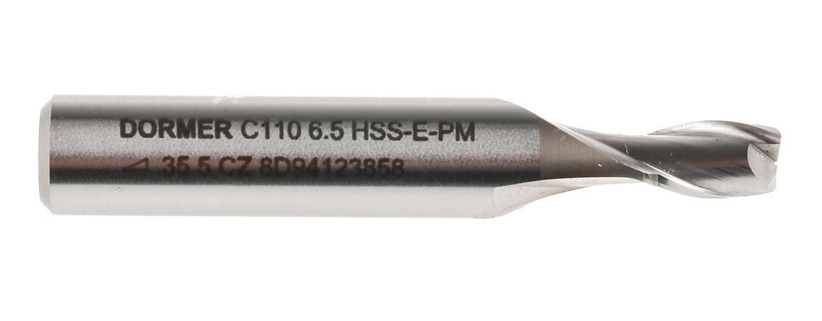 This is 60 mm HSS-E-PM Slot Drill 10mm Cut Length 6.5mm Cut Diameter 2 Flutes manufactured by Dormer. The manufacturer part number is C1106.5. The product is made from highly stable and reliable hss-e-pm. It has a plain type shank . In addition, its shank diameter is about 10 mm . It has a 6.5mm diameter cutter . It has a/an e8 tolerance diameter . It has an overall length of 60 mm. Its cut length is about 10mm . The product consists of 2 flutes.