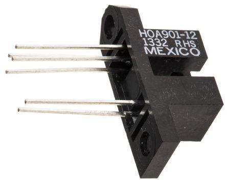 This is Through Hole Slotted Optical Switch Inverter Open-Collector with 10K Pull-Up Resistor Output manufactured by Honeywell. The manufacturer part number is HOA0901-012. Its output device includes inverter, open-collector with 10k pull-up resistor. The given dimensions of the product include 24.38 x 8 x 10.64mm. The product is available in through hole configuration. The product has -40 → +85°c of operating temperature range. It has a typical 100ns rise time . In addition, the height is 10.64mm. Furthermore, the product is 8mm wide. Its accurate length is 24.38mm. It is comprised of 6 pins. Whereas, the minimum operating temperature of the product is -40°c. It is supplied with 2 channels. It has a maximum operating temperature of +85°c. It has a typical 100ns fall time .