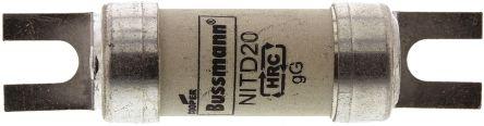 This is 20A A1 British Standard Fuse gG 550V ac manufactured by Cooper Bussmann. The manufacturer part number is NITD20. Concerning body diameter, it is 13.8mm. The product has a gg application category. The product has a current rating of 20 a. Moreover, the product has a nominal 550 v ac voltage rating. It has a typical 44.5mm fixing centres . A fuse with a a1 size. Its tag is 11.2mm wide . Moreover, it has a high rupture capacity yes . Its body height is 34.6mm. The fuse complies with bs 88, iec 60269 standards. It has an overall length of 55mm.
