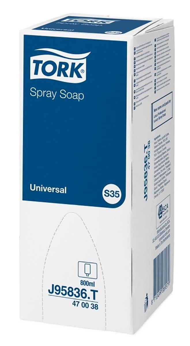 This is Hand Soap Spray manufactured by Tork. The manufacturer part number is 470038. It has a decent green colour. It has a 800 ml volume unit . It features s35 range. The package is a sort of cassette. In addition, it exhibits a/an fragrant fragrance . Its package size is approximately 800 ml . In addition, it has an anti-bacterial feature no .