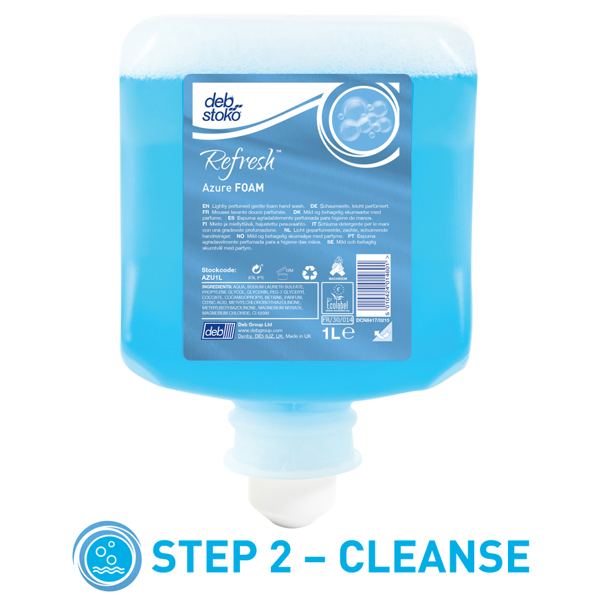 This is deb stoko Floral Azure Foam Wash Hand Soap - 1 L Cartridge manufactured by SCJ Professional. The manufacturer part number is AZU1LRS. It is assigned with a trade name of azure foam. Better World Verification Options - eu ecolabel. Is it a better world product? yes. It has a decent blue colour. It has a/an deb wrm1ldsen dispensers compatible dispensers . The package is a sort of cartridge. In addition, it exhibits a/an floral fragrance . Its package size is approximately 1l . In addition, it has an anti-bacterial feature no .