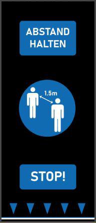 This is Social Distancing Mat Blue German 0.65m manufactured by RS PRO. The manufacturer part number is 201-2648. Its text message shows abstand halten . Furthermore, the product is 0.65m wide. However, its text language is german . It is 6mm thick.