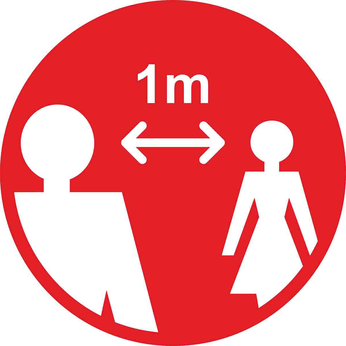 This is Vinyl Social Distancing 1m Apart Sign With Pictogram Only Text 400 x 400mm manufactured by RS PRO. The manufacturer part number is 201-3356. Its text message shows 1m . Its diameter is 400mm. Additionally, it is self-adhesive yes . It has a decent red colour. The product is made from highly stable and reliable vinyl. Furthermore, the product is 400mm wide. However, its text language is none . In addition, it displays 1m apart sign description .