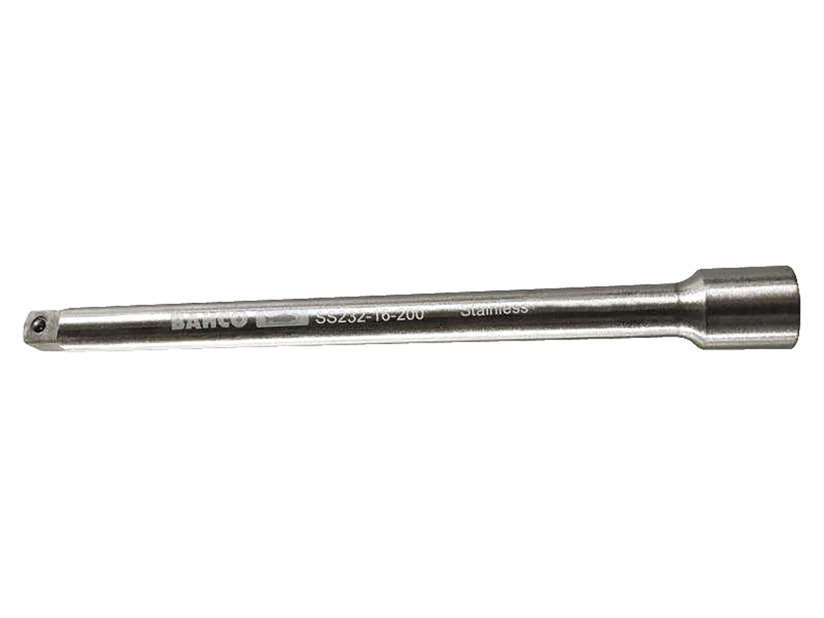 This is 3/4 in Square Extension Bar Length 100 mm manufactured by Bahco. The manufacturer part number is SS234-24-100. The product features a square drive. The product is made from highly stable and reliable stainless steel. It has an overall length of 100 mm. The product has a drive size of 3/4 in. It comes in extension configuration.