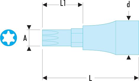 This is Torx Screwdriver Bit 6.6 mm manufactured by Facom. The manufacturer part number is SX.40LA. It comes in screw socket configuration.