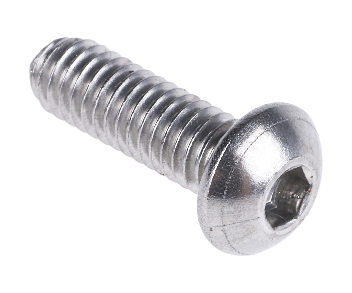 This is M4 Hex Socket Button Screw Stainless Steel x 12mm manufactured by RS Pro. The manufacturer part number is 183-8648. It is available in metric package. The stainless steel is a a2 304. The head has a hex socket button shape. The product complies with all safety standards, such as iso 7380. The product is made from highly stable and reliable stainless steel. It has a typical thread size of m4. Its accurate length is 12mm. Moreover, it has a/an metric type thread . Furthermore, the pitch of the thread is 0.7mm.