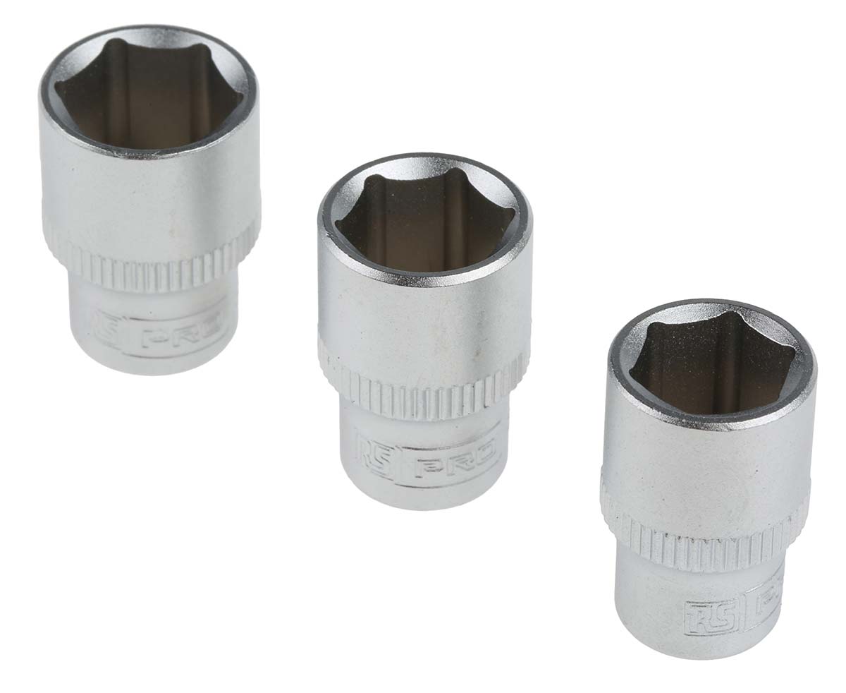 This is 12 Pieces Shallow Socket Set 1/4 in Square Drive manufactured by RS Pro. The manufacturer part number is 487-113. It is available in metric package. A quality product with a nice chrome finish. The product features a square drive. The product is made from highly stable and reliable chrome vanadium steel. The product has a drive size of 1/4 in. The product consists of 12 pieces.