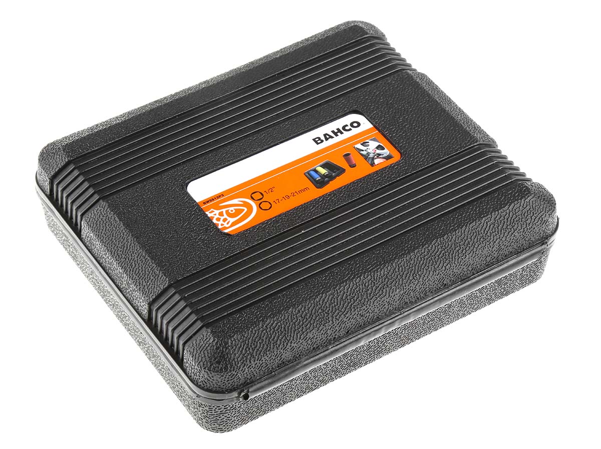 This is 3 Pieces Socket Set 1/2 in Hexagon Drive manufactured by Bahco. The manufacturer part number is BWSS12P3. It is available in metric package. A quality product with a nice plastic coated finish. The product features a square drive. The product is made from highly stable and reliable alloy steel. The socket's size is 17mm. The product has a drive size of 1/2 in. The product consists of 3 pieces.
