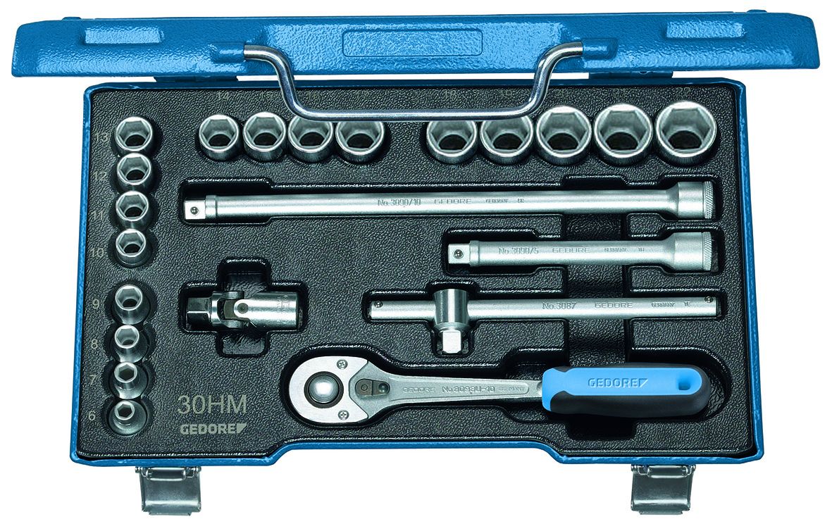 This is 22 Pieces Socket Set 3/8 in Square Drive manufactured by Gedore. The manufacturer part number is D 30 HMU-10. VDE/1000V Approval Options - no. The product is insulated no . A quality product with a nice chrome finish. The product features a square drive. The product is made from highly stable and reliable chrome vanadium steel. The socket's size is 6-22 mm. The product has a drive size of 3/8 in. Moreover, it has ratchet, sockets set contents . socket set is a versatile product designed to provide user-defined applications. The 12 point socket offers profound benefits and is well-designed. The product consists of 22 pieces.