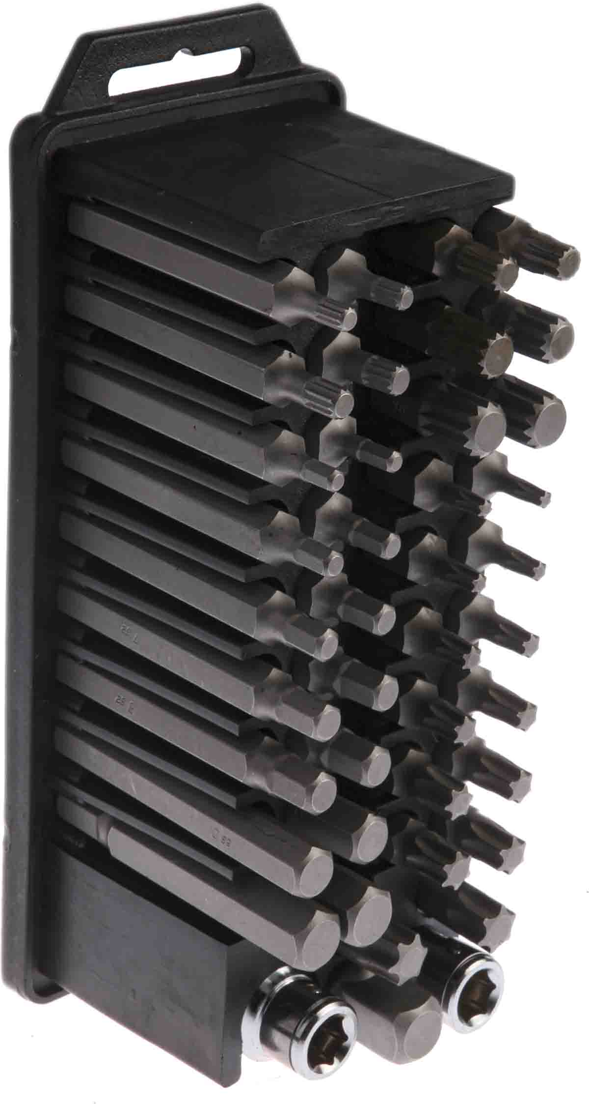 This is 45 Pieces Socket & Bit Set 1/2 in 3/8 in Square Drive manufactured by RS Pro. The manufacturer part number is 213-1011. It is available in metric package. A quality product with a nice chrome finish. The product features a square drive. The product is made from highly stable and reliable chrome vanadium steel. The product has a drive size of 1/2 in; 3/8 in. The product consists of 45 pieces.