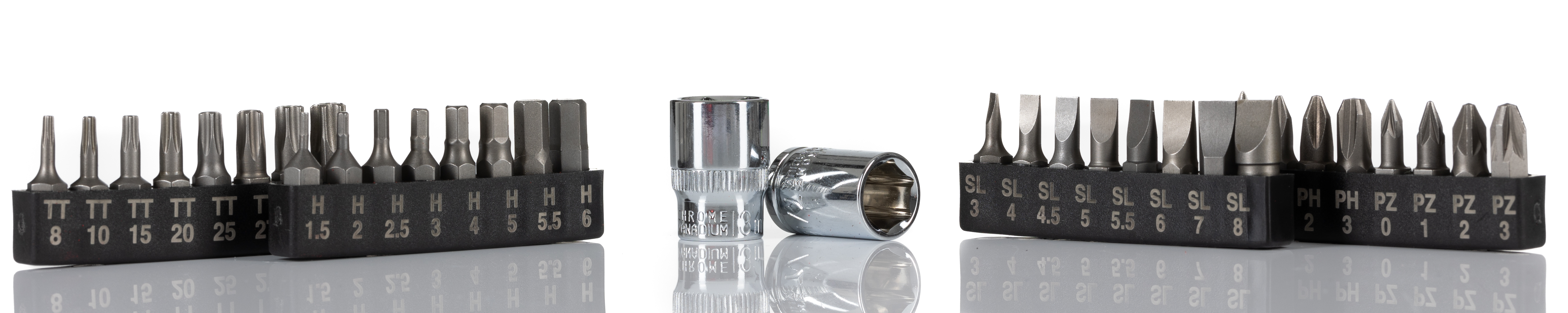 This is 46 Pieces Square Drive Socket Set 1/4 in Square Drive manufactured by RS Pro. The manufacturer part number is 623-6441. It is available in imperial, metric package. A quality product with a nice chrome finish. The product features a square drive. The product is made from highly stable and reliable alloy steel. The product has a drive size of 1/4 in. The product consists of 46 pieces.