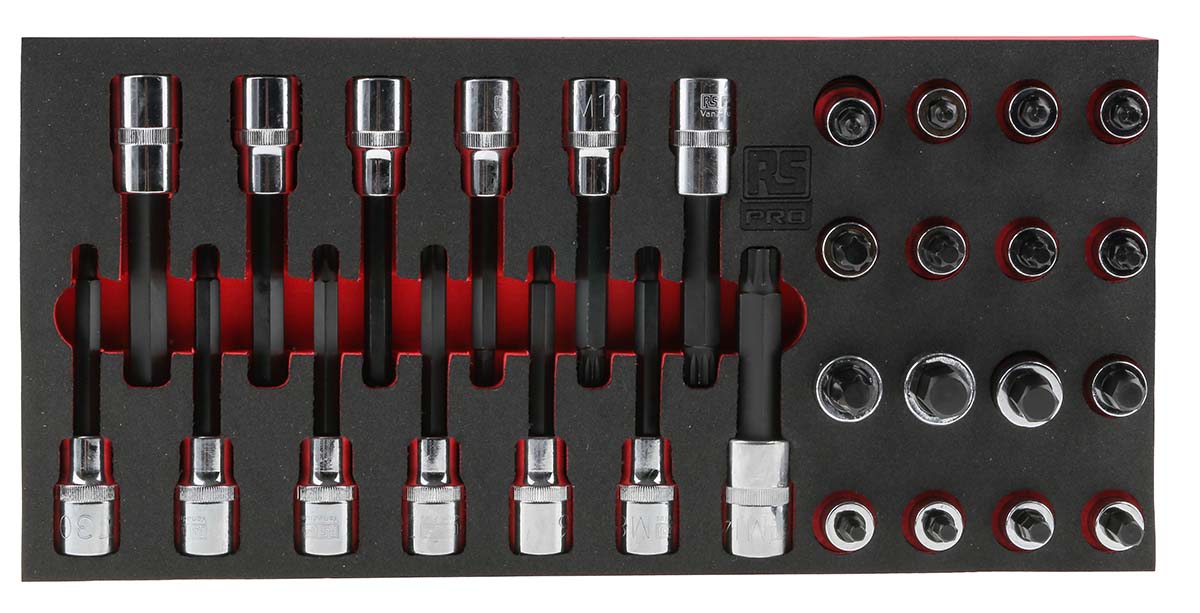 This is 29 Pieces Socket Set 1/2 in Square Drive manufactured by RS Pro. The manufacturer part number is 833-5957. A quality product with a nice chrome finish. The product features a square drive. The product is made from highly stable and reliable steel. The product has a drive size of 1/2 in. The product consists of 29 pieces.