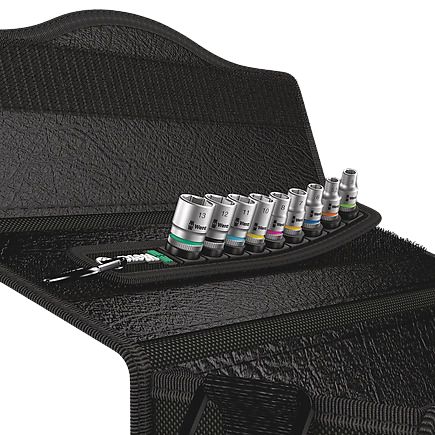 This is 9 Pieces Socket Set 1/4 in Hexagon Drive manufactured by Wera. The manufacturer part number is 05003883001. It is available in metric package. The product features a square drive. The socket's size is 5.5 mm, 5 mm, 6 mm, 7 mm, 8 mm, 10 mm, 11 mm, 12 mm, 13 mm. The product has a drive size of 1/4 in. Moreover, it has socket set contents . The product consists of 9 pieces.
