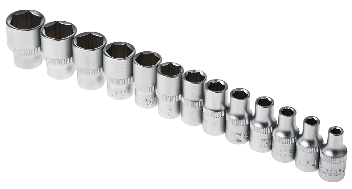 This is 14 Pieces Socket Set 1/4 in Square Drive manufactured by RS Pro. The manufacturer part number is 668-5789. It is available in metric package. A quality product with a nice chrome finish. The product features a square drive. The product is made from highly stable and reliable chrome vanadium steel. The product has a drive size of 1/4 in. The product consists of 14 pieces.