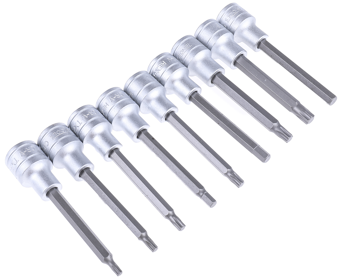 This is 15 Piece Socket Set 1/2 in Hexagon Drive manufactured by Teng Tools. The manufacturer part number is TTTXH15. VDE/1000V Approval Options - no. The product is insulated no . A quality product with a nice satin finish. The bit socket offers profound benefits and is well-designed. The product is made from highly stable and reliable chrome vanadium steel. It has an overall length of 100mm. The product has a drive size of 1/2 in. Moreover, it has tx sizes tx20-tx60, metric hexagon sizes 5-12 mm set contents . socket set is a versatile product designed to provide user-defined applications. The product features a hex drive. The product consists of 15 pieces.