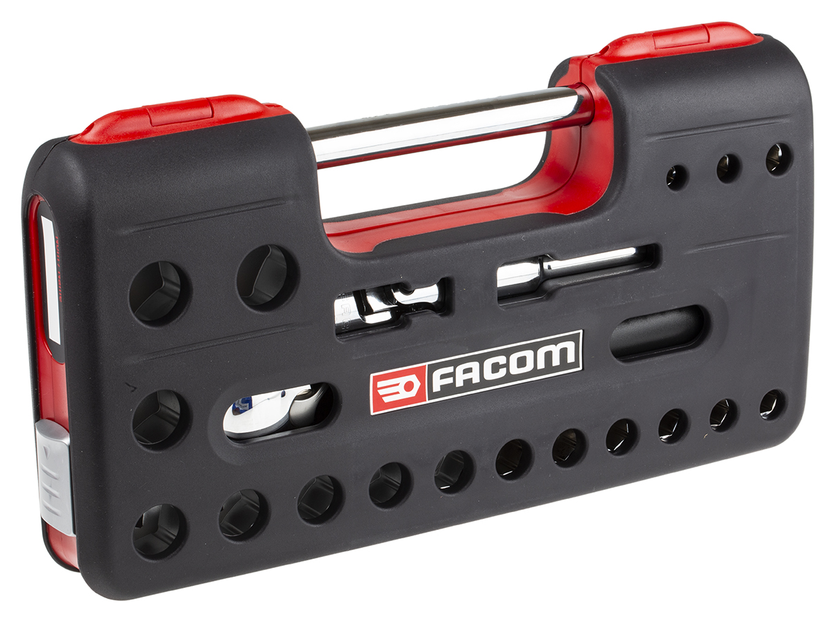 This is 21 Piece Socket Set 1/2 in Square Drive manufactured by Facom. The manufacturer part number is SL.DBOX1PB. VDE/1000V Approval Options - no. A quality product with a nice bright chrome finish. The standard socket offers profound benefits and is well-designed. The product is made from highly stable and reliable chrome vanadium steel. The product has a drive size of 1/2 in. Moreover, it has joint, sockets, ratchet, extensions set contents . socket set is a versatile product designed to provide user-defined applications. The product features a square drive. The product consists of 21 pieces.