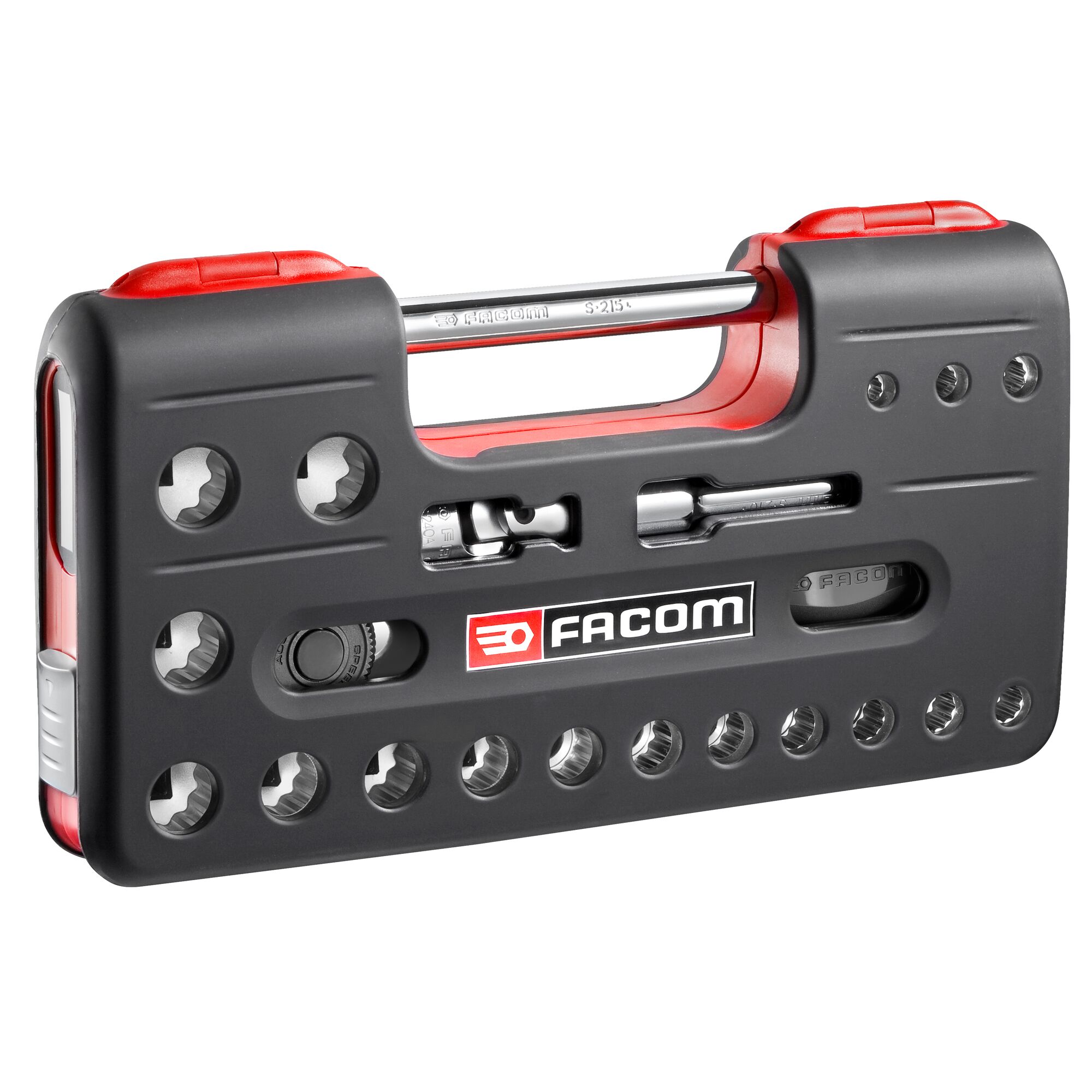 This is 21 Piece 1/2 in Socket Set manufactured by Facom. The manufacturer part number is S.360DBOX112. It is available in metric package. VDE/1000V Approval Options - no. A quality product with a nice bright chrome finish. The product features a square drive. The product is made from highly stable and reliable chrome vandium steel. The socket's size is 8 , 10 , 11 , 12 , 13 , 14 , 15 , 16 , 17 , 18 , 19 , 21 , 22 , 24 , 27 , 30 , 32mm. The product has a drive size of 1/2 in. It has a model s.360dbox112. Moreover, it has ratchet, sockets, extensions, joint set contents . The product consists of 21 pieces.