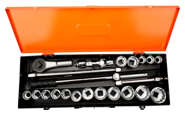 This is 23-Piece 3/4 in manufactured by Bahco. The manufacturer part number is 8821MB. The product has a drive size of 3/4 in. The product consists of 23 pieces.