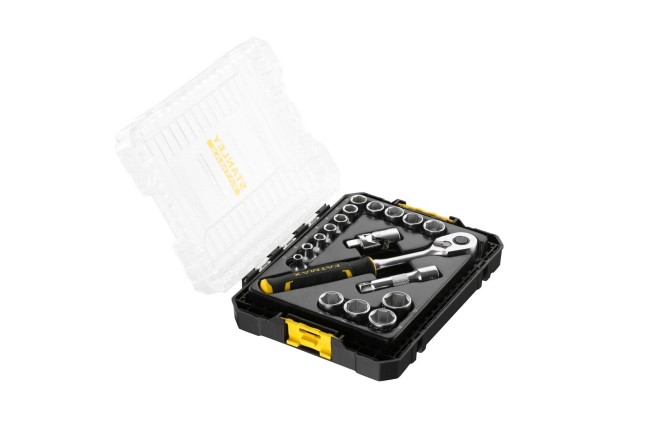 This is 18-Piece 3/8 Standard Socket Set with Ratchet 6 point manufactured by Stanley. The manufacturer part number is FMMT98102-0. The product has a drive size of 3/8. The product consists of 18 pieces.
