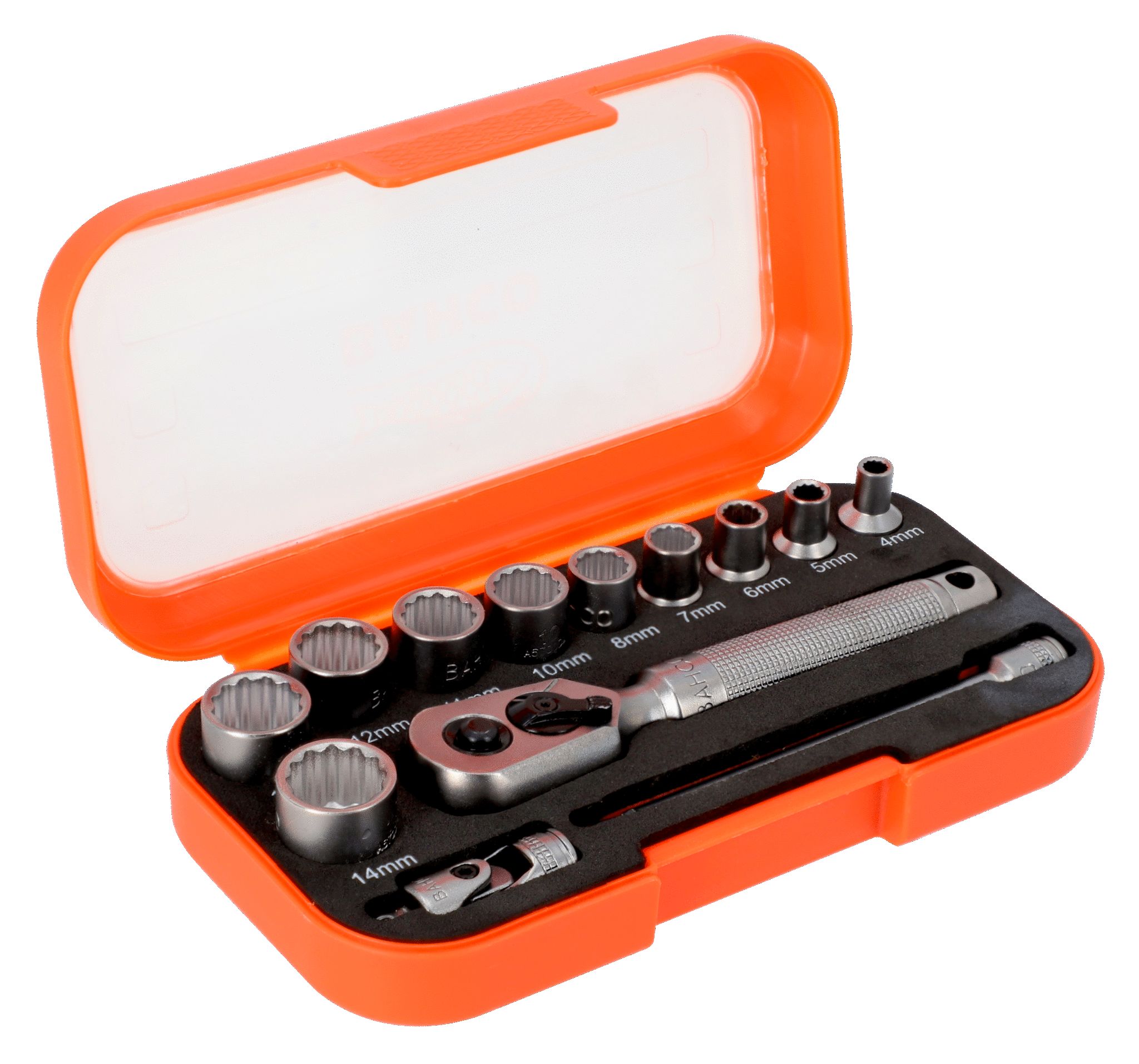This is 13-Piece Metric 1/4 Bit Socket Set with Ratchet Square manufactured by Bahco. The manufacturer part number is S13MC10.5. It is available in metric package. The product has a drive size of 1/4. The product consists of 13 pieces.