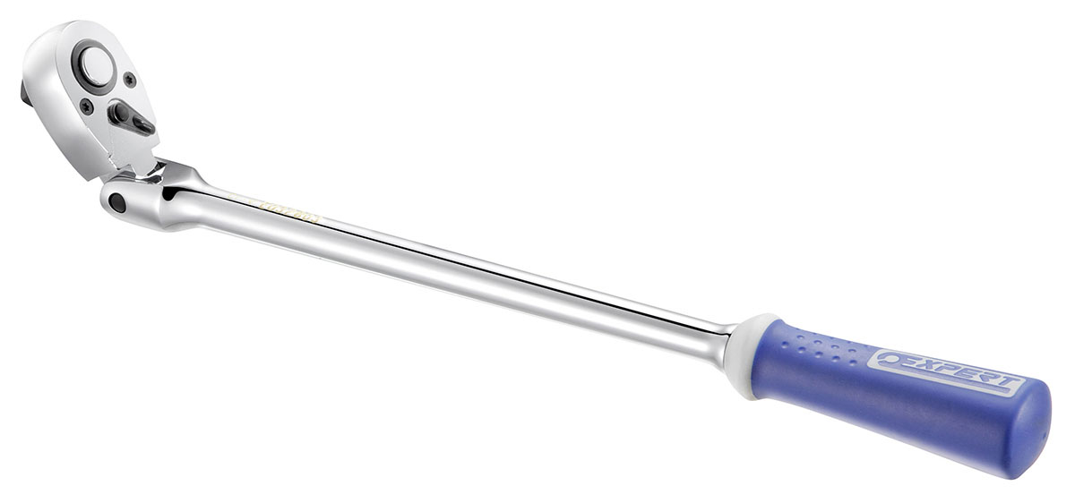 This is 1/2" SD FLEXIBLE HEADED RATCHET manufactured by Expert by Facom. The manufacturer part number is E032803. A quality product with a nice chrome finish. The product is made from highly stable and reliable chrome vanadium steel. It has an overall length of 437 mm. The product has a drive size of 1/2 in. Basically, this handle is a type of ratchet, allowing extreme comfort.
