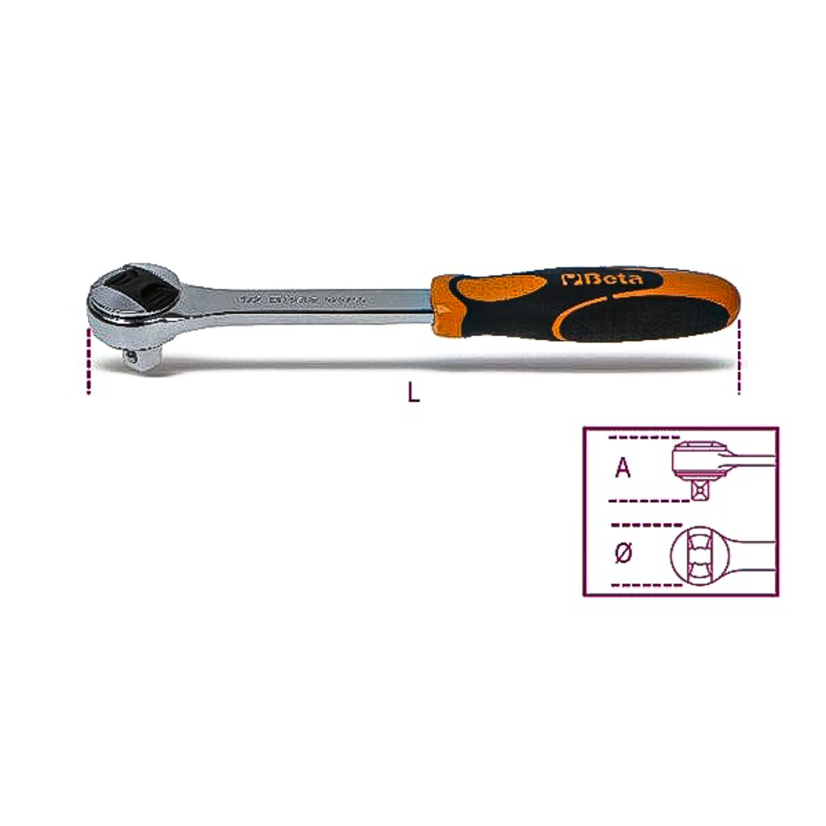 This is 1/2 in Square Ratchet with Ratchet Handle 276 mm Overall manufactured by BETA. The manufacturer part number is 920/55. The product has a drive size of 1/2 in. Its driver is of a/an square shape . Basically, this handle is a type of ratchet, allowing extreme comfort. It has an overall length of 276 mm.