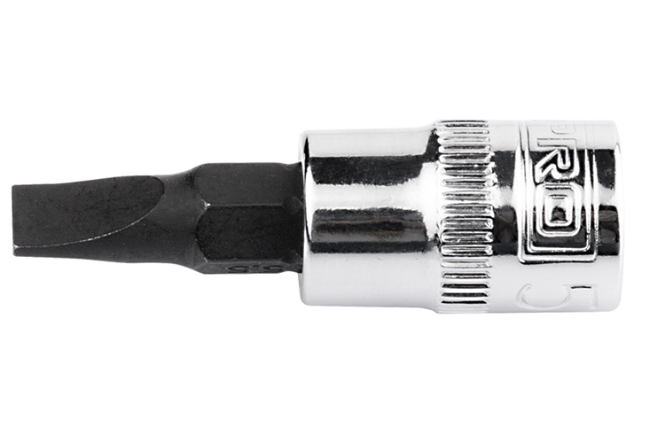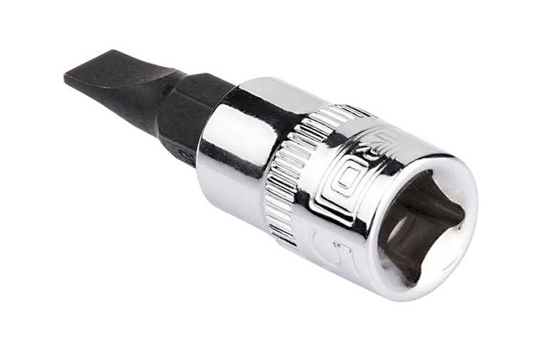 This is 5.5mm Slotted Driver Bit With 1/4 in Drive manufactured by RS PRO. The manufacturer part number is 192-3777. The product features a square drive. The product has a drive size of 1/4 in. Its bit is about 18.0mm in length . The bit socket socket offers profound benefits and is well-designed.