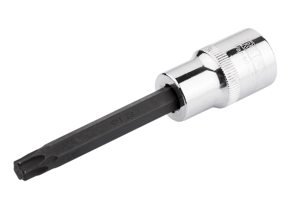 This is T40 Torx Driver Bit With 1/2 in Drive Length 100 mm manufactured by RS PRO. The manufacturer part number is 192-3805. A quality product with a nice chrome finish. The product features a square drive. The product is made from highly stable and reliable chrome vanadium molybdenum steel. It has an overall length of 100 mm. The product has a drive size of 1/2 in. Its bit is about 62 in length . The bit socket socket offers profound benefits and is well-designed.
