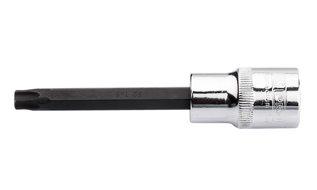 This is T40 Torx Driver Bit With 1/2 in Drive Length 100 mm manufactured by RS PRO. The manufacturer part number is 192-3805. A quality product with a nice chrome finish. The bit socket offers profound benefits and is well-designed. The product is made from highly stable and reliable chrome vanadium steel, molybdenum steel. It has an overall length of 100mm. The product has a drive size of 1/2 in. socket is a versatile product designed to provide user-defined applications. The product features a square drive.