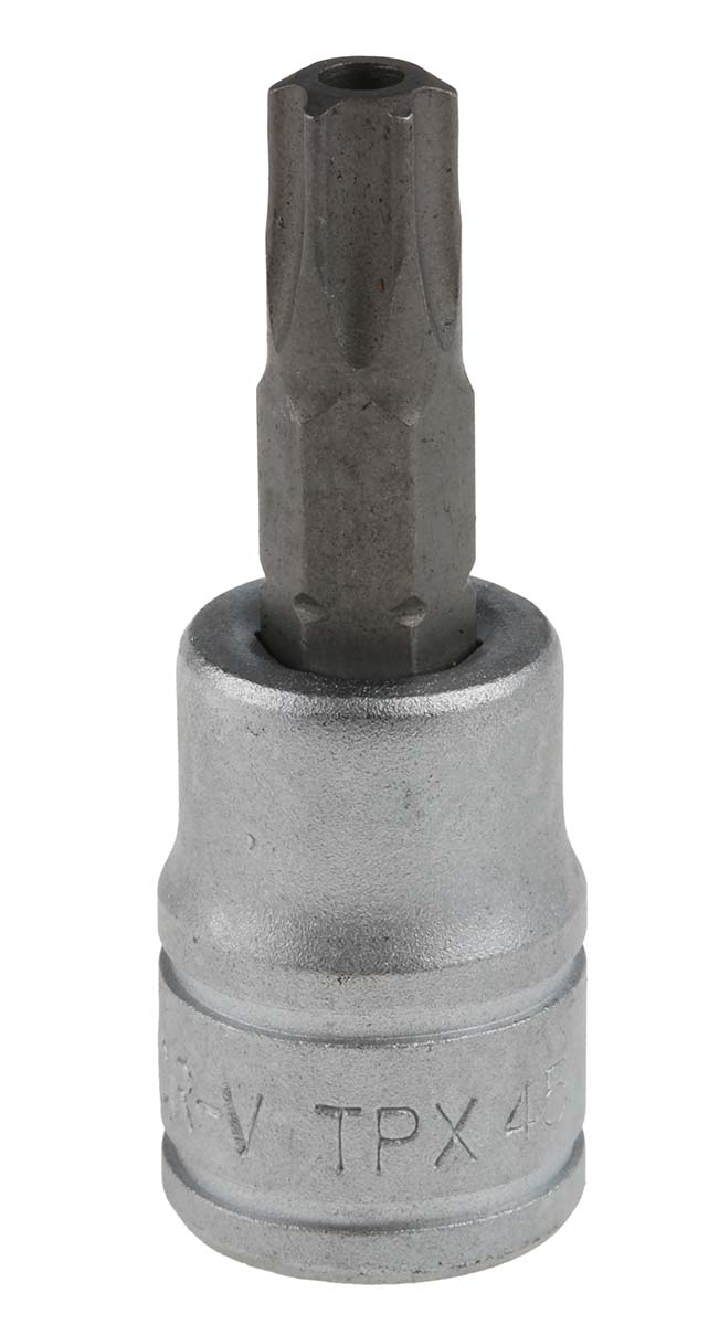 This is Socket 3/8 inch Drive TPX45 manufactured by Teng Tools. The manufacturer part number is M381245-C. A quality product with a nice chrome plated finish. The product features a square drive. The product is made from highly stable and reliable alloy steel. The product has a drive size of 3/8 in. The bit socket socket offers profound benefits and is well-designed.