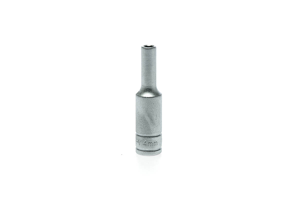 This is 4mm Deep Socket With 6.35 mm Drive Length 49.5 mm manufactured by Teng Tools. The manufacturer part number is M140604-C. It is available in metric package. The deep socket socket offers profound benefits and is well-designed. The socket's size is 4mm. It has an overall length of 49.5 mm. The product has a drive size of 1/4 in.
