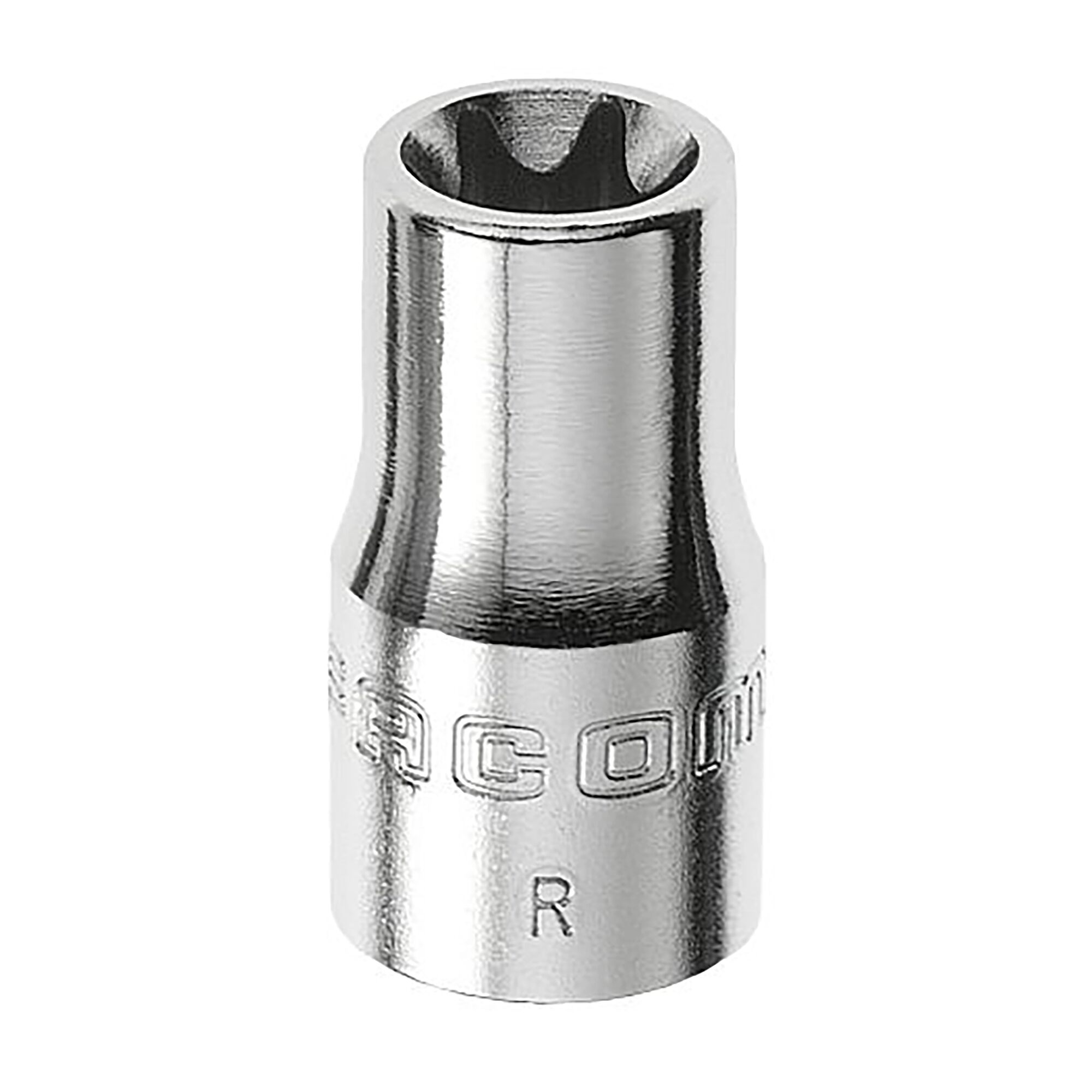 This is E4 Torx Socket With 1/4 in Drive Length 22 mm manufactured by Facom. The manufacturer part number is RTX.4. It is available in metric package. VDE/1000V Approval Options - no. It has a non sparking nature no . A quality product with a nice chrome finish. The product features a square drive. The product is made from highly stable and reliable chrome vanadium steel. It has an overall length of 22 mm. The socket's size is e4. The product has a drive size of 1/4 in. Its bit is about 3.2mm in length . It has a model rtx.4. The standard socket socket offers profound benefits and is well-designed.