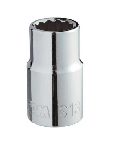 This is 1/2 in Drive 17mm Standard Socket 12 point 38 mm Overall Length manufactured by SAM. The manufacturer part number is S-17. It is available in metric package. The standard socket socket offers profound benefits and is well-designed. The socket's size is 17mm. It has an overall length of 38 mm. The product has a drive size of 1/2 in. It has a model s-17.