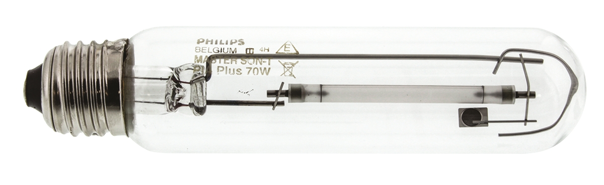 This is 70 W Clear Tubular SON-T Lamp ES/E27 2000K 32mm manufactured by Philips Lighting. The manufacturer part number is 70SONTPLUS. Its diameter is 32mm. Moreover, it has a SON of son-t type . Features luminosity up to 6600 lm. This product carries 70 w. It has about 91lm/w luminous efficacy . It has clear lamp finish . The lamp base is es/e27. Its accurate length is 156 mm. This integrates a colour temperature of 2000k. It has about 23 colour rendering . It includes a/an tubular shape lamp .