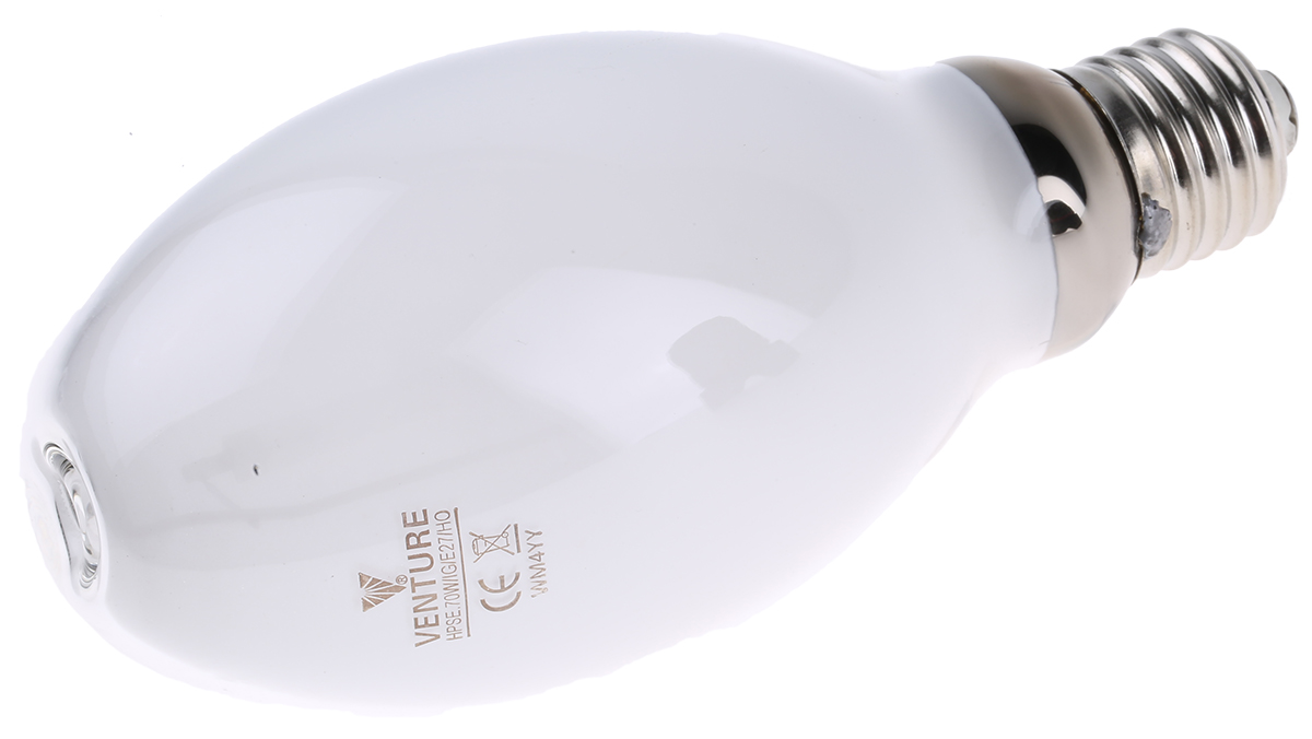 This is 70 W Diffused Elliptical SON-E Lamp E27 2000K 27mm manufactured by Venture Lighting. The manufacturer part number is 00405RS. Its diameter is 27mm. Moreover, it has a SON of son-e type . The product has g UK energy efficiency rating . Features luminosity up to 6000 lm. This product carries 70 w. It has about 86lm/w luminous efficacy . It has diffused lamp finish . It is rated with g EU energy efficiency. The lamp base is e27. Its accurate length is 156 mm. This integrates a colour temperature of 2000k. It has about 25 colour rendering . It includes a/an elliptical shape lamp .