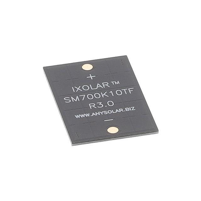 This is manufactured by ANYSOLAR Ltd. The manufacturer part number is SM700K10TF. It is assigned with possible HTSUS value of 8541.43.0080. The product is rohs compliant. The open circuit features 6.91 v. The product has -40°c ~ 90°c operating temperature range. Moreover, the product comes in cells. It comes in monocrystalline configuration. The given current at Pmpp is 27.7 ma. Its maximum watts include 154.3 mw. The anysolar ltd's product offers user-desired applications. The product's diameters include 0.945" l x 1.417" w x 0.059" h (24.00mm x 36.00mm x 1.50mm). It has a long 12 weeks standard lead time. Its typical moisture sensitivity level is 1 (unlimited). The product ixolar™, is a highly preferred choice for users. It features 29.5 ma of short circuits-current. It has 5.58 v at given Pmpp. In addition, tray is the available packaging type of the product. The product is designated with the ear99 code number.