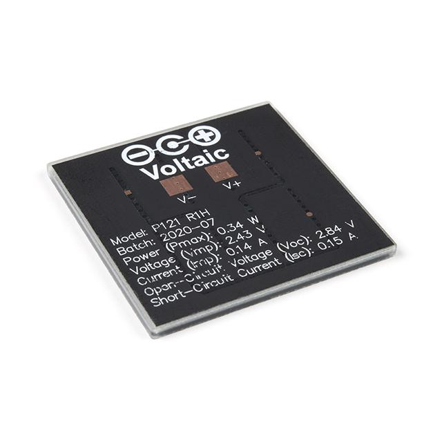 This is manufactured by SparkFun Electronics. The manufacturer part number is PRT-18723. It is assigned with possible HTSUS value of 8541.43.0080. The product is not applicable. The open circuit features 2.84 v. The product has -40°c ~ 85°c operating temperature range. Moreover, the product comes in cells. It comes in photovoltaic configuration. The given current at Pmpp is 130 ma. Its maximum watts include 330 mw. It is shipped in bulk package . The product's diameters include 2.047" l x 2.047" w x 0.114" h (52.00mm x 52.00mm x 2.90mm). It has a long 11 weeks standard lead time. Its typical moisture sensitivity level is 1 (unlimited). It features 150 ma of short circuits-current. It has 2.43 v at given Pmpp. The product is designated with the ear99 code number.