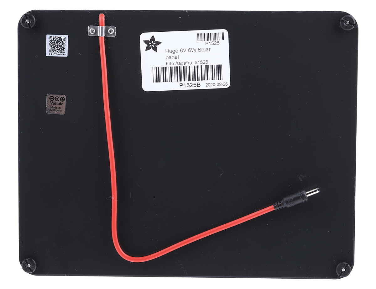 This is Solar Battery Charger Output:6 V @ 930 mA manufactured by ADAFRUIT INDUSTRIES. The manufacturer part number is 1525. Is it a better world product? yes. The given dimensions of the product include 220 x 175 x 10mm. The typical product's weight is 225g. It has a model number 1525. Features a 6 v @ 930 ma output voltage. Feature 5.6w of power rating.