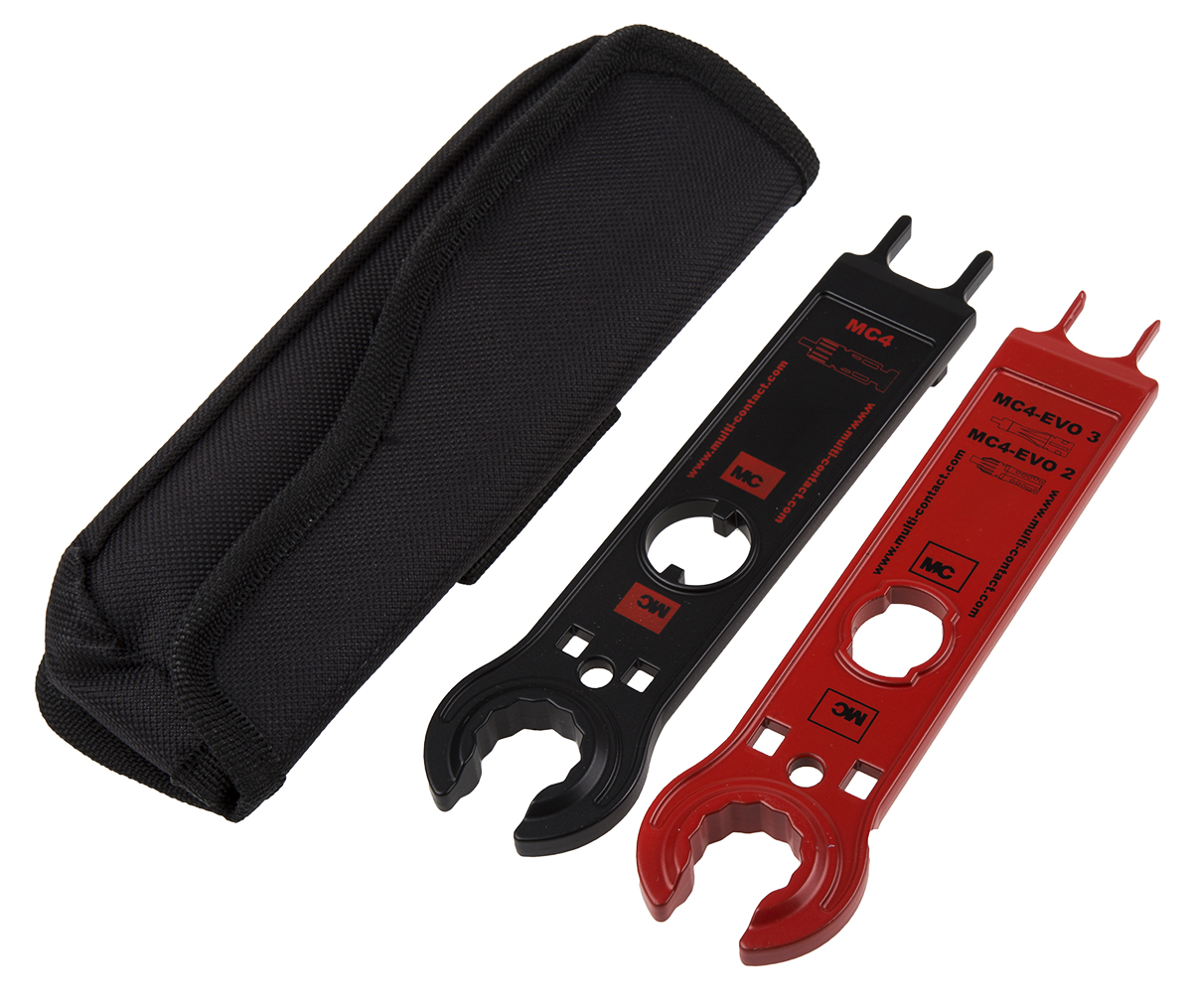 The Staubli 32.6058 is a metal open‑end spanner set explicitly designed for assembly and release of MC4 and MC4‑Evo photovoltaic connectors. Supplied as a pair of precision spanners, it enables secure tightening and unlocking of PV‑system plug‑in connections in solar panel installations. Manufactured by Staubli’s PV‑Tools division, the set supports efficient onsite service and maintenance operations.