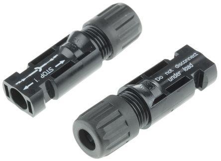 This is Male Cable Mount MC4 Connector Coupler Cable CSA4 → 6mm² Rated At 30A 1 kV manufactured by Multi Contact. The manufacturer part number is 32.0017P0001-100. The product has a current rating of 30a. The product is available in cable mount configuration. It is IP rated with ip2x (un mated), ip67 (mated). In addition, male is the available "Gender" of the product. Moreover, the product has a nominal 1 kv voltage rating. Whereas, the minimum operating temperature of the product is -40°c. The cross section area of the cable includes 4 → 6mm². It has a maximum operating temperature of +90°c. It comes in coupler configuration.