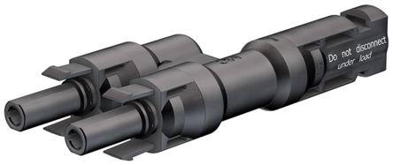 This is Female to Female Cable Mount MC4 Connector Branch Connector Plug Rated At 30A 1 kV MC4-Evo2 manufactured by ABB. The manufacturer part number is 1SNV420183R0000. The product has a current rating of 30a. It has plus keying . The product is available in cable mount configuration. It is IP rated with ip67. In addition, female to female is the available "Gender" of the product. Moreover, the product has a nominal 1 kv voltage rating. It allows quick connect termination method. It comprises a plug. The product mc4-evo2, is a highly preferred choice for users. It has a maximum operating temperature of +105°c. It comes in branch connector configuration.