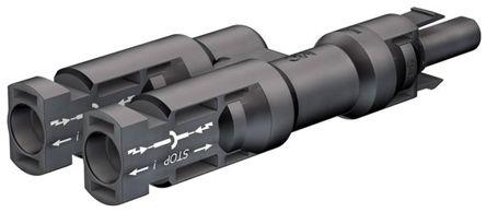 This is Male to Male Cable Mount MC4 Connector Branch Connector Socket Rated At 30A 1 kV MC4-Evo2 manufactured by ABB. The manufacturer part number is 1SNV420193R0000. The product has a current rating of 30a. It has minus keying . The product is available in cable mount configuration. It is IP rated with ip67. In addition, male to male is the available "Gender" of the product. Moreover, the product has a nominal 1 kv voltage rating. It allows quick connect termination method. It comprises a socket. The product mc4-evo2, is a highly preferred choice for users. It has a maximum operating temperature of +105°c. It comes in branch connector configuration.