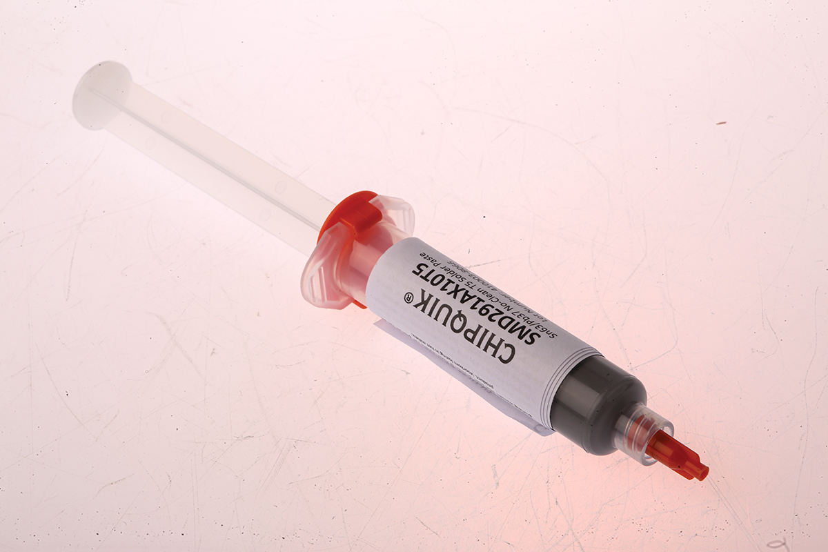 This is 35g Syringe Solder Paste manufactured by CHIPQUIK. The manufacturer part number is SMD291AX10T5. It is assigned with a trade name of smd291ax. The package is a sort of syringe. Its package size is approximately 35g .